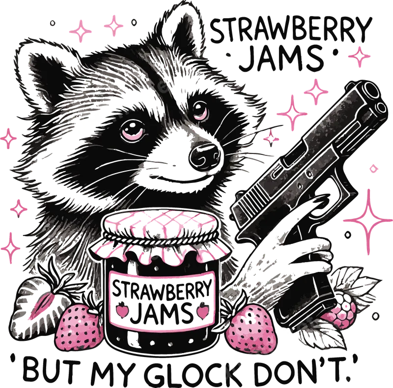 Raccoon Strawberry Jams & Glock Funny DTF Transfer Design
