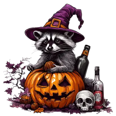 Raccoon Witch on Pumpkin DTF Transfer - Halloween Spooky Cute Design