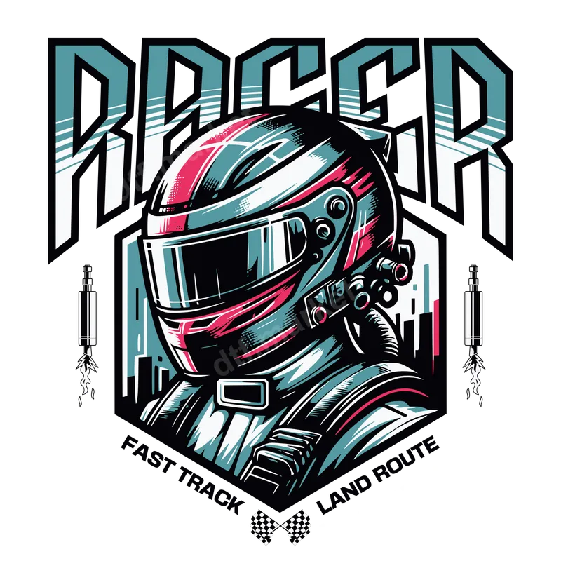 See allThe design features a bold, graphic illustration of a race car driver's helmet in a modern, angular style, framed by the word "RACER" and "FAST TRACK LAND ROUTE" with checkered flags. The teal, pink, and dark accents give it a dynamic, high-energy aesthetic perfect for motorsports enthusiasts. This high-quality DTF transfer is ready to press onto your favorite apparel, bringing a professional, durable finish. This direct to film transfer is ideal for anyone passionate about racing, motorsports, or speed culture. It's a fantastic choice for race day events, car shows, track days, or as an everyday statement for gearheads and thrill-seekers. It makes a unique gift for birthdays, Father's Day, or any occasion for a fan of fast cars or competitive driving. Applying this heat transfer is simple and efficient on cotton, polyester, and various blends. For best results, use a heat press at 300-325°F for 15 seconds with medium pressure. Unlike vinyl transfers, there's absolutely no weeding required, making customization quick. It can also be applied with a high-quality household iron, though a heat press is recommended for professional results. Our ready to press heat press design promises exceptional quality. Each iron on transfer boasts vibrant colors that pop, superior crack resistance, and a remarkably soft hand feel that blends beautifully with the fabric. Made with professional-grade DTF film and strong adhesive, these apparel transfers are designed for longevity, ensuring your custom creation withstands washes and wear.