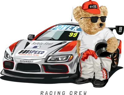 Racing Crew Bear & Race Car DTF Transfer | Motorsports T-Shirt Design