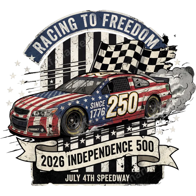 See allUnleash your patriotic spirit with this dynamic 'Racing to Freedom' DTF transfer. This bold design features a distressed American flag-wrapped stock car, complete with the number '250' and 'Since 1776,' tearing past a checkered flag. The vintage-style banner proudly proclaims '2026 Independence 500' and 'July 4th Speedway,' all set against a grungy striped and starry background. This ready to press transfer captures the thrill of racing and the pride of American independence, making it a powerful statement piece for any apparel. This unique heat press design is perfect for motorsports enthusiasts, patriotic Americans, and anyone celebrating Independence Day. It's an ideal choice for 4th of July barbecues, NASCAR race days, patriotic events, or as a thoughtful gift for dads, veterans, and racing fans. Show off your love for freedom and speed at festivals, family gatherings, or while cheering on your favorite driver. This versatile design offers a striking way to personalize your wardrobe for summer festivities and beyond. Applying your new iron on decal is simple and efficient. Our high-quality DTF transfers are compatible with a wide range of fabrics, including 100% cotton, polyester, cotton-poly blends, and even triblends. For best results, use a heat press at 300-325°F for 15 seconds with medium pressure. These ready-to-press transfers require no weeding, cutting, or layering, making customization effortless for crafters and businesses alike. Even a household iron can achieve great results with proper technique. Experience superior quality with our professional DTF film transfers. Each t-shirt transfer boasts incredibly vibrant colors and sharp details that stand out. Designed for durability, these transfers are crack-resistant, fade-resistant, and will maintain their soft, flexible feel wash after wash. The strong adhesive ensures a lasting bond with your garment, providing a high-quality finish that looks professionally applied. Elevate your apparel with a transfer that combines stunning visuals with exceptional longevity.
