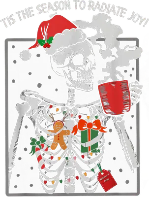 See allThis fun and festive DTF transfer features a grinning skeleton sporting a classic red Santa hat adorned with holly, holding a steaming red mug. Its rib cage is delightfully decorated with a gingerbread man wearing reindeer antlers, a brightly wrapped present, a festive candy cane, and a string of colorful Christmas lights. Above the cheerful skeletal figure, the uplifting message "TIS THE SEASON TO RADIATE JOY!" adds a touch of holiday spirit, making this ready to press design a unique blend of spooky charm and seasonal cheer. This humorous iron on transfer is perfect for radiologists, X-ray techs, radiology students, or anyone in the medical imaging field who loves a good laugh during the holidays. It makes an excellent Christmas gift for healthcare professionals, a funny Secret Santa present, or a fantastic way to create matching shirts for a radiology department's holiday party. Small businesses and crafters looking for unique heat transfer designs to offer during the festive season will find this a popular choice. Ideal for adding a touch of quirky joy to any holiday gathering or as a statement piece throughout December. Applying this heat press transfer is simple and efficient. It adheres beautifully to cotton, polyester, cotton-poly blends, and even nylon fabrics. For best results, use a heat press at 300-325°F for 15 seconds with medium pressure. No tedious weeding is required – just peel and press! This versatile apparel transfer is perfect for creating custom t-shirts, cozy hoodies, durable tote bags, festive pillow covers, and even personalized aprons. For lasting durability, wash garments inside out and tumble dry on low heat. Experience exceptional quality with this ready to press transfer, boasting vibrant, full-color printing and incredibly fine details that bring the design to life. Our direct to film transfer technology ensures a crack-resistant and soft-to-the-touch finish, avoiding the heavy, stiff feel often associated with traditional vinyl. Each design is meticulously printed on premium DTF film with a strong adhesive backing, guaranteeing professional-grade results and long-lasting wear on all your creations.