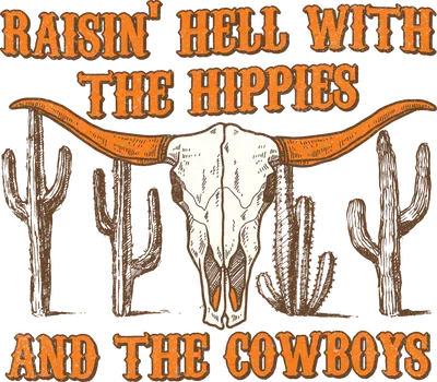 Raisin' Hell Hippies & Cowboys Steer Skull DTF Transfer