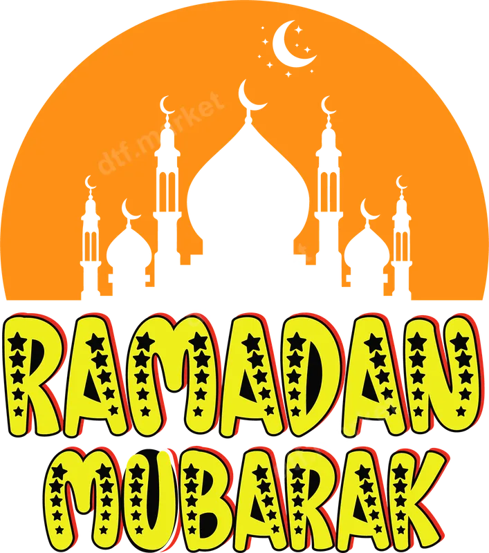 See allThis cheerful DTF transfer showcases a festive "Ramadan Mubarak" greeting, perfect for celebrating the holy month. The design features a serene white mosque silhouette, complete with elegant domes and towering minarets, set against a warm, inviting orange circle reminiscent of a crescent moonlit sky. Above, a delicate crescent moon and twinkling stars add a magical touch. The bold, yellow bubble letters of "RAMADAN MUBARAK" are adorned with tiny black stars, giving the entire design a vibrant and joyful feel. This ready-to-press heat transfer is designed to bring a celebratory spirit to any garment. This unique apparel transfer is ideal for anyone in the Muslim community looking to express their faith and celebrate Ramadan Kareem. It's perfect for families and friends gathering for Iftar, Eid al-Fitr celebrations, or daily observances throughout the blessed month. Craft custom t-shirts for community events, personalized gifts for loved ones, or special outfits for children. It’s a wonderful way to spread blessings and share the spirit of Ramadan, making it suitable for religious gatherings, charitable events, or simply everyday wear during this sacred time. Applying this direct to film transfer is incredibly simple, requiring no tedious weeding like traditional vinyl transfer methods. Our premium heat press design works beautifully on a wide range of fabrics, including cotton, polyester, and various blends. For best results, use a heat press at 300-325°F for 15 seconds with medium pressure, followed by a cold peel. While a heat press is recommended for professional application, this versatile iron on decal can also be successfully applied with a high-quality household iron, making customization accessible to everyone. Crafted using professional-grade DTF film, this ready to press transfer ensures exceptional durability and vivid color reproduction. The result is a transfer that is soft to the touch, highly crack-resistant, and maintains its vibrant appearance wash after wash. Our superior adhesive ensures a strong bond to your chosen garment, providing a long-lasting and high-quality finish. Elevate your apparel with a professional-looking shirt design that truly stands out and spreads the joy of Ramadan.