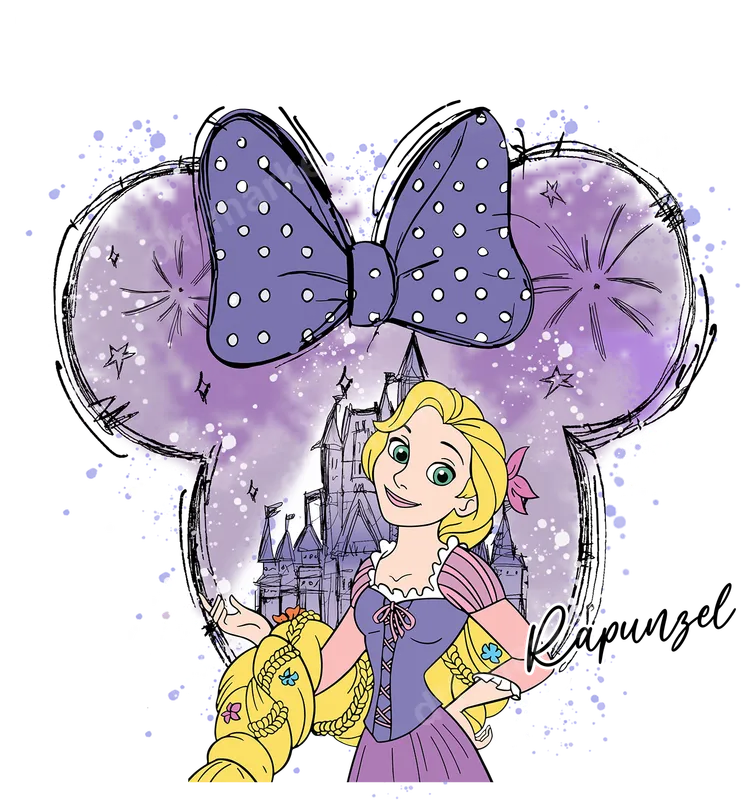Rapunzel Disney Princess DTF Transfer with Mickey Ears & Castle