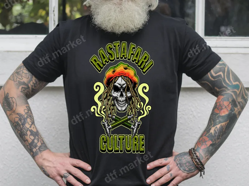 See allDive into the vibrant world of reggae with our 'Rastafari Culture' skull DTF transfer. This eye-catching design features a detailed skull adorned with dreadlocks and a classic Rasta beanie in red, yellow, and green. Below, crossed pipes complement the bold 'Rastafari Culture' text, emanating a cool, smoky vibe. It's a perfect ready to press design for anyone looking to express their love for the genre and its rich heritage. This unique heat press transfer is ideal for reggae enthusiasts, music festival-goers, or anyone celebrating Caribbean culture. It makes a fantastic gift for friends who appreciate distinctive streetwear or those who want to add an authentic touch to their wardrobe. Perfect for everyday wear, concerts, or simply to showcase your passion, this graphic stands out. Our premium direct to film transfer is designed for easy application across a wide range of fabrics, including cotton, polyester, and various blends. Achieve professional results with a heat press at 300-325°F for 15 seconds with medium pressure, or apply it effortlessly with a household iron. Forget the hassle of weeding; this heat press design is ready to go straight from the film to your chosen garment. Experience superior quality with this durable apparel transfer. The colors are incredibly vibrant, ensuring your design pops and remains crack-resistant even after multiple washes. Our DTF transfer produces a soft-to-touch finish, unlike traditional vinyl transfers, providing maximum comfort. Made with professional-grade DTF film and strong adhesive, this iron on decal delivers lasting wear and a high-quality finish on any item.