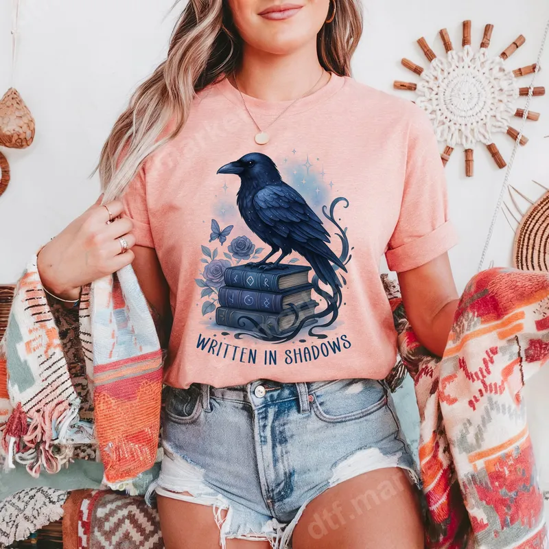 Raven & Books 'Written in Shadows' DTF Transfer | Gothic Literary Design