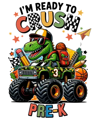 Ready to Crush Pre-K Monster Truck Dinosaur DTF Transfer