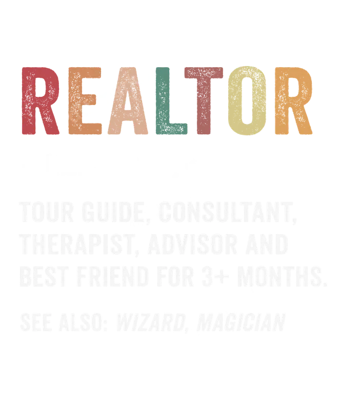 See allThis unique DTF transfer features a humorous definition of a 'REALTOR' in a cool, distressed retro font. The design playfully lists their many roles: tour guide, consultant, therapist, advisor, and best friend for 3+ months, even going as far as "wizard" or "magician." It's a perfect ready to press transfer for anyone in the real estate profession or those who appreciate their hard work with a good laugh. This witty heat press design is ideal for real estate agents, brokers, and anyone in the property industry looking to showcase their profession with humor. It makes an excellent gift for a new realtor, a veteran agent, or as a fun uniform accessory for a real estate team. Perfect for office parties, closing gifts, or everyday wear to bring a smile to clients' faces, this apparel transfer celebrates the demanding yet rewarding nature of the job. Applying this vibrant iron on transfer is incredibly simple. It's compatible with a wide range of fabrics, including cotton, polyester, and various blends, ensuring versatility for your projects. For best results, use a heat press at 300-325°F for 15 seconds with medium pressure, then cold peel. For home users, a household iron can also be used with firm, even pressure. Unlike traditional vinyl transfer, our DTF transfers require no weeding, making customization quick and effortless. Our premium heat press ready designs are crafted using high-quality DTF film and inks, ensuring exceptional vibrancy, durability, and a soft-to-the-touch finish. This ready to press transfer is designed to be crack-resistant and withstand countless washes, maintaining its crisp detail and color. Elevate your apparel with a professional-grade iron on decal that truly stands out, reflecting the dedication and magic of every realtor.