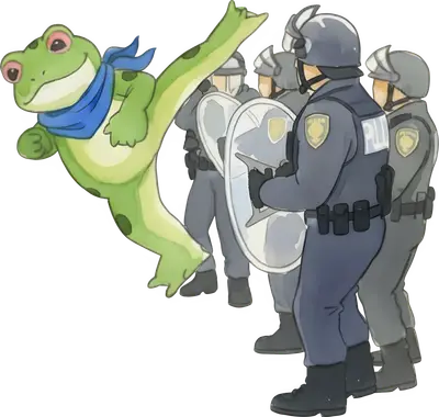 Rebellious Frog Kicking Police DTF Transfer | Anti-Establishment Meme Design
