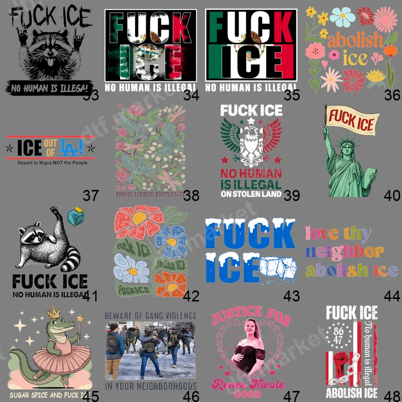 See allThis impactful DTF transfer features a detailed, rebellious raccoon flashing rock and roll "devil horns" gestures, centered below the bold, defiant text "FUCK ICE". Below the raccoon, the powerful statement "NO HUMAN IS ILLEGAL" is displayed. This ready to press design combines striking imagery with a clear, uncompromising message, perfect for making a strong stand. Designed for activists, social justice advocates, and individuals passionate about immigration rights, this heat press design is ideal for expressing solidarity and protest. Wear it to rallies, community events, or as an everyday statement piece. It also makes a thoughtful and powerful gift for friends and family who champion human rights and oppose unjust immigration policies. Our high-quality apparel transfer is incredibly easy to apply to a variety of garments. Suitable for cotton, polyester, and most fabric blends, simply use a heat press at 300-325°F for 15 seconds with medium pressure. For those without a professional heat press, a household iron can also be used following specific instructions. Enjoy the convenience of a ready to press transfer with absolutely no weeding required. Experience professional-grade results with our vibrant, crack-resistant heat transfer. Each direct to film transfer is printed with premium inks on durable film, ensuring a soft feel that stretches with your garment. The strong adhesive provides long-lasting durability, allowing your powerful iron on message to endure wash after wash without fading or peeling.