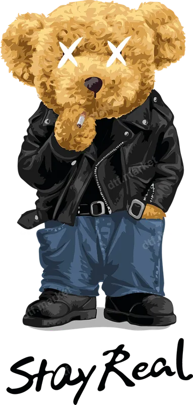 See allThis edgy DTF transfer features a rebellious teddy bear with "X" eyes, a cigarette, and dripping nose, dressed in a classic black leather jacket, blue jeans, and boots. Below the bear, the phrase "Stay Real" is scripted, embodying an authentic streetwear vibe. This high-quality, ready to press design offers a unique way to customize your apparel. Perfect for urban fashion enthusiasts, street culture aficionados, or anyone seeking unique graphics. This heat press design is ideal for personalizing clothing for music festivals, casual wear, or as a statement gift for trendsetters. Use it to create custom t-shirts, hoodies, or jackets that truly express an individual, authentic attitude. Applying this versatile heat transfer is simple. It adheres beautifully to cotton, polyester, and various blends. For optimal results, use a heat press at 300-325°F for 15 seconds with medium pressure (cold peel). A household iron can also be used for smaller applications, ensuring even pressure. Unlike traditional vinyl transfers, there's no weeding required, making your customization process quick and easy. Our direct to film transfers are crafted with professional-grade DTF film and inks, guaranteeing vibrant, long-lasting colors. This iron on transfer is designed to be crack-resistant, peel-resistant, and soft to the touch, seamlessly blending with your garment. The strong adhesive ensures a durable, professional-quality finish that withstands regular washing without fading.