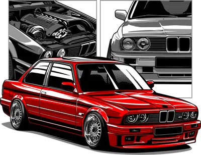 Red Classic Sports Car DTF Transfer | E30 M3 Engine & Front View