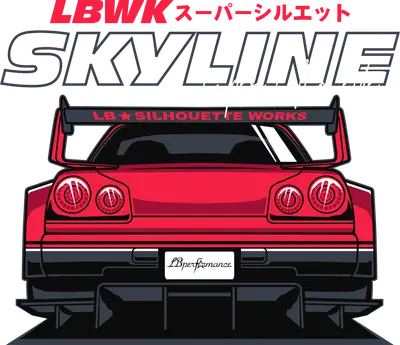 Red JDM Skyline R34 GTR LBWK Super Silhouette DTF Transfer