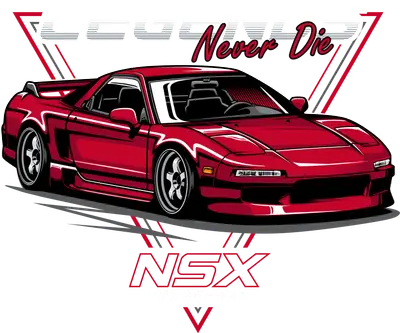 Red NSX Legends Never Die DTF Transfer | JDM Sports Car Heat Press Design