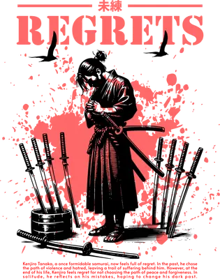 See allDive into the depth of personal reflection with this striking "Regrets" Samurai design, a premium DTF transfer that speaks volumes. It features a lone samurai warrior, head bowed in deep contemplation, surrounded by a multitude of katana swords. Dramatic blood-splatter-like effects in a vibrant coral hue underscore the powerful "REGRETS" text, making this a truly impactful and ready to press statement piece. This unique graphic is perfect for streetwear enthusiasts, fans of Japanese culture, and anyone who appreciates art with a philosophical edge. It's an ideal iron on transfer for individuals looking to express introspection or a love for historical warrior themes. Small t-shirt businesses and indie apparel brands will find this heat transfer design a compelling addition to their collections, offering a popular and thought-provoking motif for customers seeking unique custom apparel. Applying this high-quality heat press transfer is quick and easy, requiring no tedious weeding. It's compatible with a wide range of fabrics including cotton, polyester, cotton-poly blends, and even nylon. Simply use a heat press (300-325°F for 15 seconds with medium pressure) or a household iron. Once applied, it's perfect for creating stunning custom t-shirts, hoodies, sweatshirts, tote bags, and denim jackets. For best results and lasting durability, wash garments inside out and tumble dry low. Experience superior quality with this ready to press transfer, boasting vibrant, full-color printing and exceptional fine detail that truly brings the samurai's story to life. The design is crack-resistant and offers a soft, lightweight feel, unlike heavy vinyl transfers. Each direct to film transfer is meticulously printed on premium DTF film with a robust adhesive backing, ensuring professional-grade results and long-lasting wear for all your apparel projects.