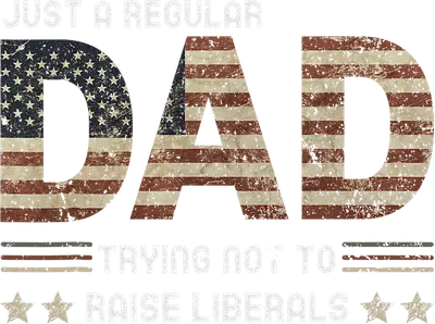 See allThis bold DTF transfer features the phrase "JUST A REGULAR DAD TRYING NOT TO RAISE LIBERALS" in a striking, distressed font. The word "DAD" stands out, proudly filled with a weathered American flag design, giving it a classic, patriotic feel. This ready to press design combines a touch of humorous sarcasm with a strong statement, perfect for dads who appreciate freedom, family values, and a good laugh. This unique iron on transfer is ideal for patriotic fathers, conservative dads, or anyone wanting to express their beliefs with a bit of wit. It makes an excellent gift for Father's Day, birthdays, Christmas, or just because, especially for grandpas or husbands who cherish American ideals. Small t-shirt businesses and crafters looking for popular heat transfer designs with a political edge will find this a great seller for custom apparel. Applying this heat press transfer is simple and efficient. It adheres perfectly to a wide range of materials, including cotton, polyester, cotton-poly blends, and even nylon. Achieve professional results using a heat press (300-325°F for 15 seconds with medium pressure) or a standard household iron. With no weeding required, you can create custom t-shirts, hoodies, sweatshirts, tote bags, and denim jackets in minutes. For lasting durability, wash garments inside out and tumble dry low. Our ready to press transfers boast vibrant, full-color printing that captures every fine detail of the distressed American flag and text. This direct to film transfer is crack-resistant, soft to the touch, and avoids the heavy, bulky feel often associated with traditional vinyl transfers. Each apparel transfer is printed on premium DTF film with a strong adhesive backing, ensuring professional-grade results that stand the test of time.