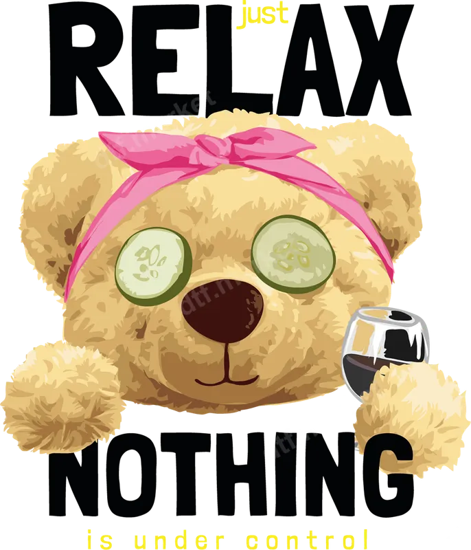 See allThis charming DTF transfer features a humorous teddy bear enjoying a spa day. Adorned with a pink head wrap, cucumber slices over its eyes, and a glass of red wine, the bear embodies the ultimate state of "just RELAX, NOTHING is under control." The playful text and imagery create a lighthearted, relatable vibe perfect for anyone needing to let go. This ready to press design brings whimsical self-care humor to any garment. This design is ideal for moms, busy professionals, students, or anyone needing a gentle, funny reminder to unwind. It's a fantastic iron on transfer for personalizing gifts for Mother's Day, birthdays, or as a "thinking of you" present. Perfect for spa days, girls' trips, self-care Sundays, or simply adding personality to your everyday wardrobe. Applying this heat press transfer is incredibly simple, making it accessible for everyone from beginners to seasoned pros. It works flawlessly on 100% cotton, 100% polyester, and cotton/poly blends. For best results, use a heat press at 300-325°F for 15 seconds with medium pressure. A household iron can also be used for smaller projects. Unlike vinyl transfer, there's no tedious weeding required, making your heat press ready design quick and easy to apply. Our direct to film transfers are crafted using professional-grade DTF film and premium inks, ensuring exceptional durability and vivid colors. The result is a vibrant, crack-resistant finish that feels incredibly soft to the touch, seamlessly integrating with your fabric. This high-quality apparel transfer maintains its integrity and brightness wash after wash, allowing you to enjoy your custom creation for years.