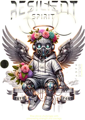 Resilient Spirit Robot Angel DTF Transfer - Futuristic Cherub Streetwear