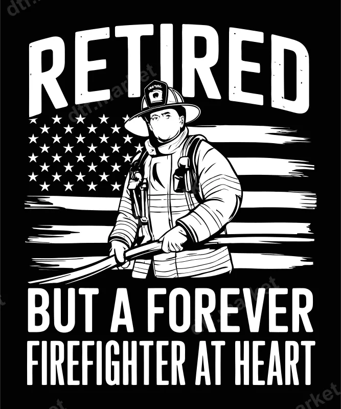 See allHonor the enduring spirit of service with this powerful "Retired But A Forever Firefighter At Heart" DTF transfer. This design proudly displays a valiant firefighter in full gear, holding a hose, against a backdrop of a distressed American flag. It's a striking and respectful tribute, perfect for expressing unwavering pride in a lifelong commitment to protecting others. This ready to press design makes it easy to create custom apparel. This apparel transfer is ideal for retired firefighters, their families, and anyone who wants to show appreciation for these brave first responders. It makes an excellent gift for retirement parties, Father's Day, Veterans Day, or just as a thoughtful gesture to acknowledge their dedicated service. Showcase your pride or gift it to a hero in your life who embodies the firefighter spirit forever. Our heat transfer designs are incredibly versatile, working flawlessly on various fabric types including cotton, polyester, and their blends. Application is straightforward with a heat press (300-325°F for 15 seconds with medium pressure) or even a household iron for smaller projects. No intricate weeding is required, saving you time and effort to bring your creative vision to life instantly. This iron on transfer ensures a smooth, professional finish every time. Experience superior quality with our professional DTF film. These heat press designs offer vibrant colors, exceptional durability, and resistance to cracking, ensuring your custom garments look fantastic and last for countless washes. The soft-touch finish and strong adhesive guarantee a comfortable, long-lasting bond with your fabric. Elevate your apparel with a design that speaks volumes.