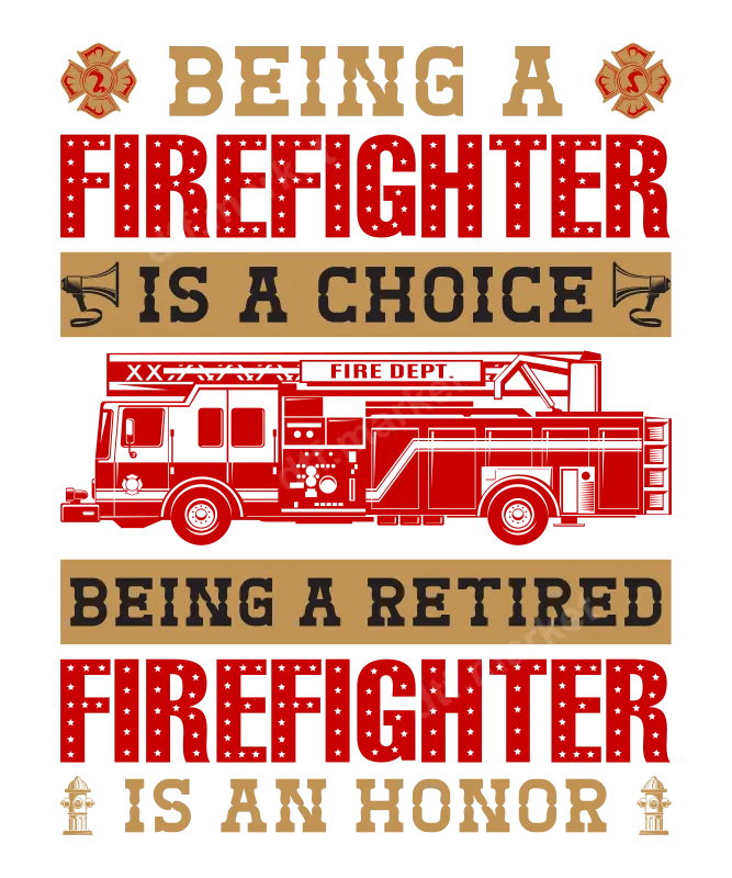 See allShow immense pride and respect for a life of service with this "Being a Firefighter is a Choice, Being a Retired Firefighter is an Honor" DTF transfer. Featuring a bold fire truck illustration, Maltese cross emblems, and megaphones, this design uses a striking red and tan color palette with a star-filled font for an impactful statement. This high-quality DTF transfer is ready to press onto your favorite apparel, making customization simple and professional. This powerful heat press design is perfect for active firefighters, retired heroes, their families, and proud supporters. It makes an ideal gift for retirement celebrations, birthdays, Father's Day, Christmas, or any occasion to honor their invaluable commitment. Create custom t-shirts, sweatshirts, or hoodies for a firefighter appreciation event, or simply wear it daily to showcase your admiration for these brave individuals. Applying this durable heat transfer is straightforward. It works seamlessly on a wide range of materials, including cotton, polyester, and various fabric blends. For best results, use a heat press at 300-325°F for 15 seconds with medium pressure, or follow instructions for a household iron. There's no complex weeding required, making your customization process quick and hassle-free. Crafted from professional-grade DTF film, this iron on transfer boasts vibrant colors that pop and a soft-to-the-touch feel that integrates beautifully with the fabric. The robust adhesive ensures a long-lasting, crack-resistant finish that will withstand countless washes, keeping your apparel looking fresh and honoring the dedication of firefighters for years to come. This apparel transfer delivers superior quality for every project.