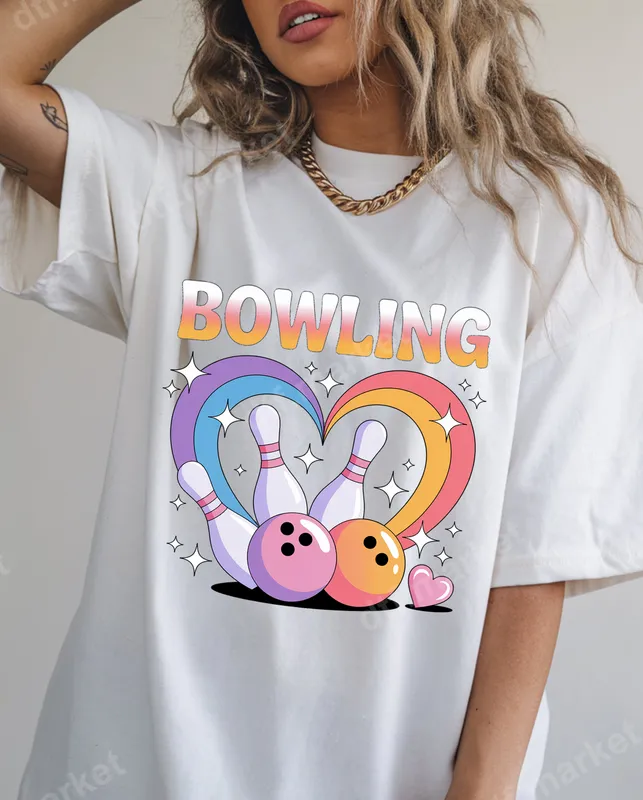 See allThis vibrant DTF transfer captures the fun spirit of bowling with a nostalgic 90s Y2K aesthetic. Featuring "BOWLING" in a trendy gradient font, the design showcases classic bowling pins and pastel pink and orange bowling balls, all embraced by a colorful rainbow heart. Sparkling accents add a touch of retro charm, making this direct to film transfer truly pop. It’s a ready to press design that combines sporty enthusiasm with a playful, vintage-inspired vibe. This versatile heat press design is ideal for bowling enthusiasts, league members, or anyone who appreciates a cute and colorful retro look. It's perfect for personalizing apparel for bowling nights, team shirts, casual outings, or themed parties. Create unique gifts for friends and family who enjoy the lanes, celebrate a bowling birthday, or simply add fun to your everyday wardrobe. This iron on transfer is a fantastic way to express your passion for the sport. Applying this premium ready to press transfer is simple and efficient. Our DTF transfers work beautifully on a wide variety of fabric types, including 100% cotton, polyester, cotton-poly blends, and more. For best results, use a heat press at 300-325°F for 15 seconds with medium pressure. A household iron can also be used with careful application. Enjoy a professional finish without the hassle of weeding or layering, making your custom apparel projects a breeze. Experience superior quality with our durable heat press ready designs. Each apparel transfer is crafted using high-quality DTF film and vibrant, eco-friendly inks, ensuring your finished product is soft to the touch, crack-resistant, and retains brilliant colors wash after wash. The strong adhesive ensures a lasting bond with your garment, providing a professional and retail-ready look. Elevate your creations with a lasting, high-definition graphic.