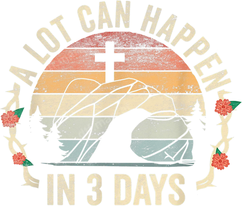 See allShowcase your faith with our unique 'A Lot Can Happen In 3 Days' DTF transfer. This eye-catching design features a distressed, retro-striped sunset background, a prominent cross, and an abstract empty tomb, framed by rugged pine trees and a delicate floral thorn vine. It's a powerful message of resurrection and hope, printed as a high-quality DTF transfer, completely ready to press onto your favorite garments. This inspirational heat transfer is perfect for Christian believers, church groups, and anyone celebrating the profound message of Easter. It makes an excellent gift for pastors, youth leaders, or family members, ideal for church events, faith conferences, or simply expressing your spiritual conviction through personalized apparel. Embrace the timeless truth with this compelling design. Applying this design is incredibly simple. This ready to press transfer works beautifully on a wide range of fabrics, including cotton, polyester, and their blends. For best results, use a heat press at 300-325°F for 15 seconds with medium pressure, then cold peel. For smaller projects or home use, a household iron on a firm, flat surface can also work. Unlike traditional vinyl transfers, there’s no weeding required—just press and peel! Our professional-grade DTF transfers deliver vibrant, long-lasting results. The colors remain brilliant wash after wash, and the transfer itself is crack-resistant and soft to the touch, ensuring maximum comfort and durability. This premium apparel transfer ensures your custom creations look professionally made and stand the test of time, sharing your message of faith for years to come.