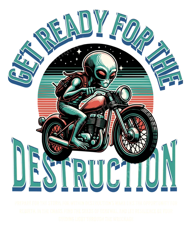 Retro Alien Biker 'Get Ready For The Destruction' DTF Transfer