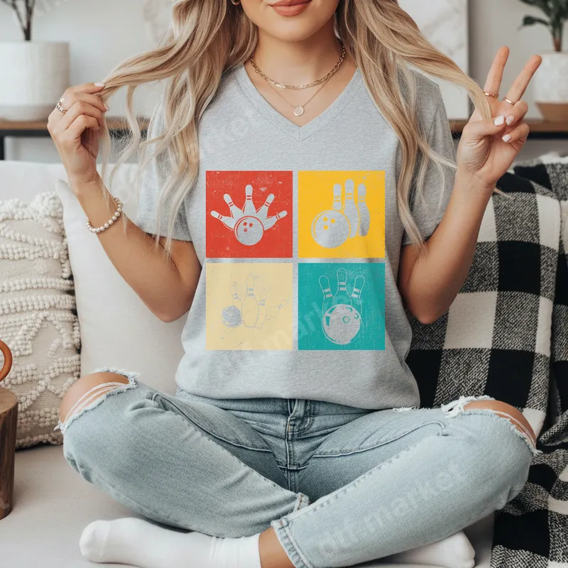 See allThis vibrant retro bowling DTF transfer brings a nostalgic vibe to any garment. Featuring four distressed square panels, each showcases a unique bowling graphic – from a hand throwing a ball to various pin setups. The vintage aesthetic and classic sports imagery make this ready to press design perfect for anyone who loves hitting the lanes or appreciates a cool, old-school look. This high-quality direct to film transfer is designed for easy application. Ideal for bowling league members, casual bowlers, or anyone looking for a unique sporty tee. This design makes a fantastic gift for Father's Day, birthdays, or as a fun addition to team uniforms and spirit wear. Create custom apparel for family bowling nights, competitive leagues, or simply to show off your love for the game in a stylish, retro way. It’s also a great iron on transfer for crafting personalized gifts. Applying this heat press transfer is straightforward. It works perfectly on a wide range of materials, including 100% cotton, polyester, and various blends. For best results, use a heat press at 300-325°F for 15 seconds with medium pressure. It can also be applied with a household iron with firm, even pressure. Unlike traditional vinyl transfers, there’s no weeding required, saving you time and effort. Expect outstanding durability and a professional finish from this apparel transfer. Our premium DTF film ensures vibrant colors that resist cracking, peeling, and fading, even after multiple washes. The result is a soft-to-touch design that seamlessly integrates with your chosen fabric, providing comfort and longevity for your custom shirts, hoodies, or bags.