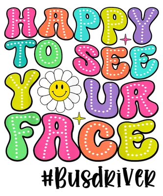 See allThis vibrant DTF transfer features a cheerful "Happy to See Your Face" message in groovy, retro-style bubble letters, each adorned with playful polka dots. A happy smiley face daisy flower adds a touch of retro charm, accompanied by sparkling stars. This eye-catching design, complete with the "#Busdriver" hashtag, is a perfect ready to press statement piece, radiating positivity and appreciation for those who safely transport our communities. Its bright, multi-colored palette pops on any garment. This joyful design is ideal for anyone looking to celebrate the dedicated bus drivers in their lives. Perfect for school staff, parent-teacher organizations, or even individual students wanting to show gratitude to their daily driver. It makes a thoughtful gift for Bus Driver Appreciation Day, end-of-school year gifts, or simply a spontaneous token of thanks. Use this unique iron on transfer to create custom apparel for bus driver teams, school events, or personal wear that spreads a smile. It's a fantastic heat transfer design for crafters and small businesses creating appreciation gifts. This heat press transfer applies seamlessly to a wide range of materials, including cotton, polyester, cotton-poly blends, and even nylon. Achieve professional results using a heat press at 300-325°F for 15 seconds with medium pressure, or apply with a household iron (though a press is recommended for best results). There's no tedious weeding required—simply peel and press! It's perfect for custom t-shirts, comfortable hoodies, cozy sweatshirts, practical tote bags, fun pillow covers, cute baby onesies, durable aprons, and stylish denim jackets. For lasting durability, wash garments inside out and tumble dry on low heat. Experience superior quality with this ready to press transfer, featuring vibrant, full-color printing and exceptional fine detail. Unlike heavy vinyl, this design is crack-resistant and soft to the touch, ensuring maximum comfort and a professional finish. Each direct to film transfer is meticulously printed on premium DTF film with a strong adhesive backing, guaranteeing consistent, high-quality results every single time you press. This ensures your apparel will look fantastic and last for many washes.