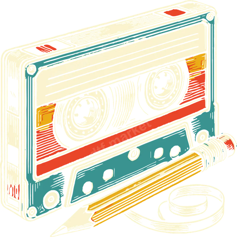 Retro Cassette Tape Pencil DTF Transfer | 80s 90s Music Ready to Press