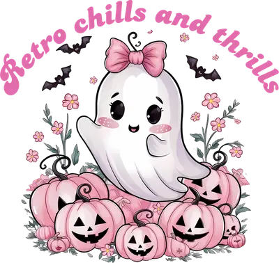 Retro Chills & Thrills Cute Ghost Pink Pumpkins DTF Transfer