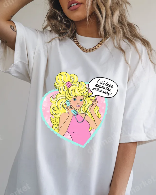 See allThis vibrant DTF transfer features a nostalgic, doll-inspired character reminiscent of classic 90s style, complete with big blonde hair, a pink top, and a vintage telephone. Enclosed in a sparkly pink heart, a speech bubble boldly declares, "Let's take down the patriarchy!" This ready to press design is perfect for adding a touch of retro empowerment to any garment, combining playful aesthetics with a powerful message. It's a high-quality heat press transfer that promises excellent results for your custom apparel projects. This unique iron on transfer is designed for anyone who loves retro pop culture, embraces feminism, or enjoys making a bold statement. It's an ideal choice for personalizing t-shirts, hoodies, tote bags, or even denim jackets for casual wear, protest events, or as a thoughtful gift for friends and fellow advocates. Perfect for Galentine's Day, International Women's Day, or just celebrating female empowerment every day. Applying this custom DTF transfer is straightforward and efficient. It works seamlessly on a wide variety of fabric types, including cotton, polyester, and their blends. For best results, use a heat press at 300-325°F for 15 seconds with medium pressure, then perform a cold peel. No weeding or complicated layering is required, making your customization process quick and hassle-free. Crafted using professional-grade DTF film and inks, this apparel transfer ensures outstanding quality and durability. The colors are incredibly vibrant, the design is crack-resistant, and it offers a soft, lightweight feel on any fabric. With its strong adhesive, your new heat press design will withstand numerous washes, keeping your message clear and your style fresh for years to come.