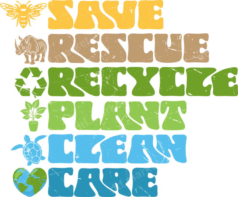 See allThis vibrant direct to film transfer features a powerful message for environmental advocacy, with words like "SAVE," "RESCUE," "RECYCLE," "PLANT," "CLEAN," and "CARE." Each word is accompanied by a charming, distressed retro graphic, including a bee, rhino, recycling symbol, potted plant, sea turtle, and a heart-shaped earth. The playful, distressed typography in earthy and aquatic tones gives this DTF transfer a nostalgic, activist feel. It's a perfect ready to press design for anyone passionate about protecting our planet. This versatile heat transfer is ideal for environmental activists, nature lovers, educators, and eco-conscious individuals. It’s perfect for celebrating Earth Day, participating in climate rallies, promoting conservation efforts, or simply expressing your commitment to a healthier planet. Use this design to create unique apparel for group events, school projects, or as a thoughtful gift for friends and family who champion environmental causes. It’s a fantastic way to spread awareness and inspire action. Our premium DTF transfers are incredibly user-friendly and can be applied to a wide range of materials, including cotton, polyester, and various fabric blends. You'll achieve professional results with a heat press set at 300-325°F for just 15 seconds with medium pressure, followed by a cold peel. For smaller projects or home use, a household iron can also be used with careful application. Best of all, there’s no tedious weeding required, making your customization process quick and hassle-free. Experience superior quality with our durable t-shirt transfer, designed to withstand numerous washes without fading, cracking, or peeling. Each heat press design is printed with vibrant, eco-friendly inks on professional-grade DTF film, ensuring crisp details and a soft, smooth finish that feels great on any garment. The strong adhesive on this apparel transfer guarantees excellent adhesion and longevity, making your custom creations look fantastic for years to come.
