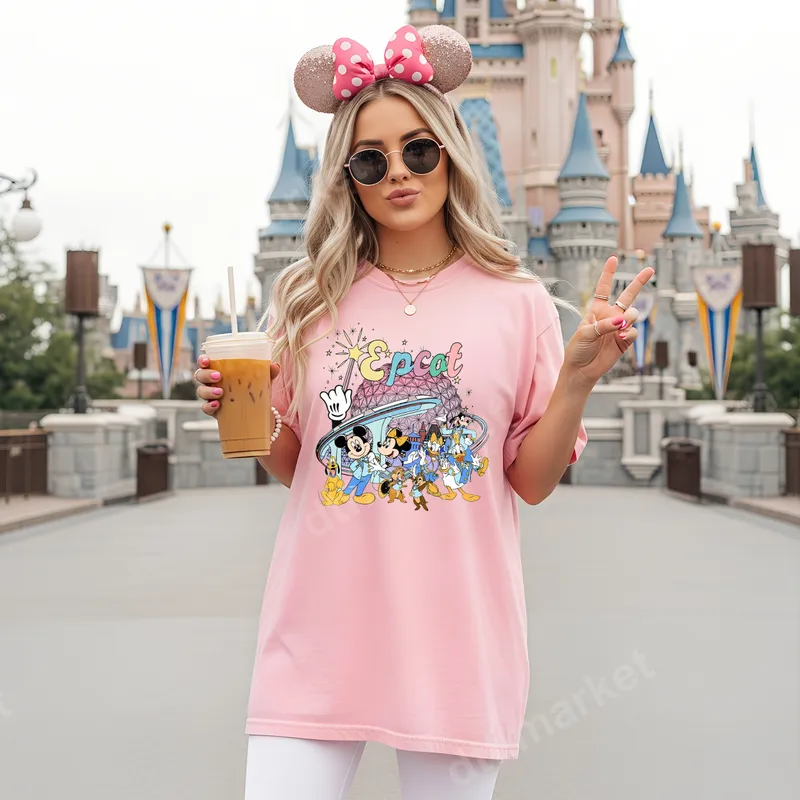 See allStep into a world of wonder with our delightful Retro Epcot Disney Characters DTF transfer, showcasing the iconic Spaceship Earth along with Mickey Mouse, Minnie Mouse, Donald Duck, Goofy, Pluto, and Chip 'n' Dale. This vibrant design captures the classic charm of Disney with a nostalgic, whimsical feel, perfect for adding a touch of magic to any garment. It's a high-quality, ready to press DTF transfer that brings the enchantment of your favorite theme park directly to your wardrobe. This magical design is ideal for Disney enthusiasts, families planning a trip to Walt Disney World, or anyone who loves the timeless appeal of Epcot. Make matching shirts for your next family vacation, create unique gifts for friends, or simply express your love for Disney in everyday casual wear. It’s a fantastic way to celebrate birthdays, anniversaries, or special park visits, ensuring you stand out with a truly custom look. Applying this design is incredibly simple, making it a favorite for both beginners and experienced crafters. Each heat transfer works beautifully on a wide range of fabrics including cotton, polyester, and various blends. Achieve professional results with a heat press set at 300-325°F for 15 seconds with medium pressure. For personal projects, a household iron can also be used, making this an easy iron on transfer with no weeding required, saving you time and effort. Crafted with premium DTF film and strong adhesive, our transfers ensure exceptional durability and a brilliant, crack-resistant finish. The colors are incredibly vibrant and the transfer feels soft to the touch, seamlessly integrating with the fabric of your choice. This professional t-shirt transfer is designed to last, maintaining its quality wash after wash, allowing you to enjoy your personalized Disney apparel for years to come.