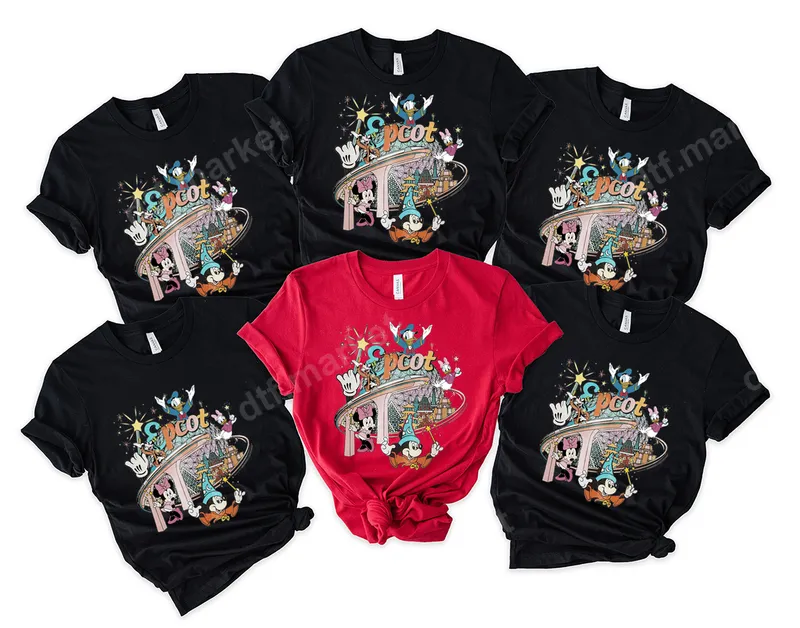 See allDive into the magic of Disney with this vibrant Epcot Squad DTF transfer, showcasing beloved characters in a lively scene. This ready to press design features Sorcerer Mickey Mouse, Minnie Mouse, Donald Duck, Daisy Duck, and Goofy, animated in a charming retro style around a sparkling "Epcot" logo with the iconic Spaceship Earth globe. It's a celebratory and nostalgic direct to film transfer that brings the joy of the park directly to your apparel. Perfect for Disney enthusiasts, this heat transfer is ideal for anyone planning a magical trip to Epcot or simply celebrating their love for classic characters. Create matching family shirts for your next vacation, unique gifts for fellow Disney fans, or custom apparel for theme park events. This design is fantastic for birthdays, fan gatherings, or adding enchantment to your everyday wardrobe. Our premium heat press design ensures a seamless application for a professional finish every time. This high-quality DTF transfer works beautifully on cotton, polyester, and various blends. Easily apply it with a standard heat press at 300-325°F for 15 seconds with medium pressure, or even a household iron for smaller projects. Forget tedious weeding; simply press and peel to reveal your stunning new garment. Experience exceptional durability and vivid colors with this professional-grade apparel transfer. Crafted using top-tier DTF film and strong adhesive, your design will be crack-resistant, incredibly soft to the touch, and maintain its vibrancy wash after wash. Transform t-shirts, hoodies, sweatshirts, and tote bags into extraordinary, personalized items with an iron on transfer that truly stands out.