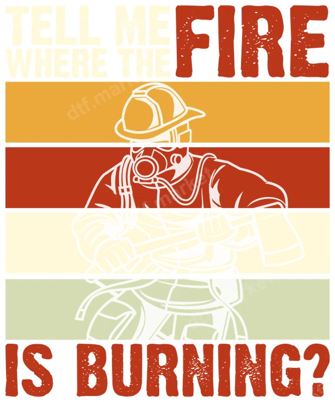 Retro Firefighter DTF Transfer | Tell Me Where The Fire Is Burning Design