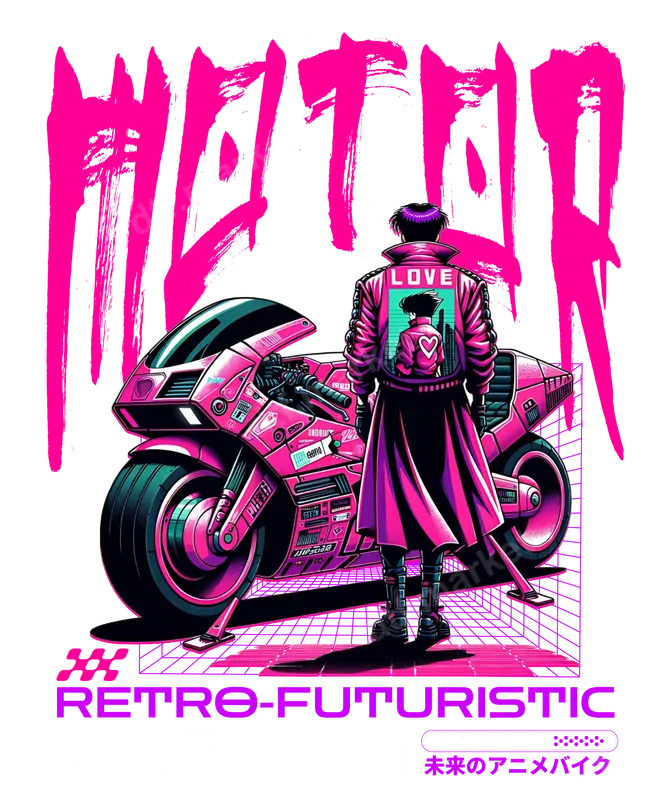 Retro-Futuristic Anime Motorcycle DTF Transfer | Neon Cyberpunk Style