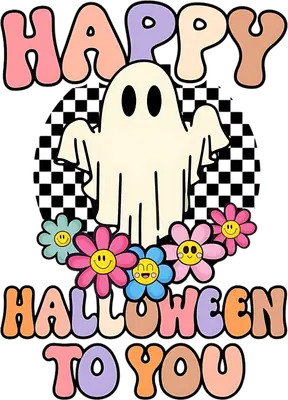 Retro Groovy Happy Halloween Ghost Flowers DTF Transfer