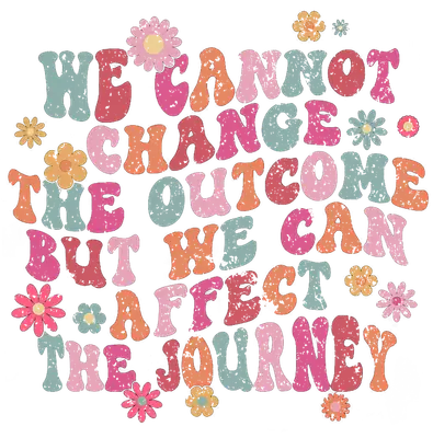 See allThis vibrant DTF transfer features an uplifting message: "WE CANNOT CHANGE THE OUTCOME BUT WE CAN AFFECT THE JOURNEY" in a distinctive retro groovy font. Adorned with charming pastel daisy-like flowers, the design showcases a distressed texture, giving it an authentic vintage and bohemian feel. The soft palette of teal, dusty pink, faded orange, and muted coral perfectly encapsulates a cheerful, optimistic, and nostalgic mood. This ready to press design is perfect for adding a touch of encouragement and retro style to any apparel or accessory. This inspirational iron on transfer is ideal for anyone who appreciates a positive outlook and vintage aesthetics. It's a fantastic choice for women of all ages, crafters, small business owners creating custom apparel, or individuals looking for a meaningful gift. Perfect for mothers, teachers, friends, or anyone navigating life's journey, this heat transfer design suits birthdays, motivational gifts, or simply as a personal reminder to stay hopeful and resilient. Its versatile appeal makes it a beloved piece for personal wear or resale. Applying this heat press transfer is a breeze, compatible with a wide range of fabrics including cotton, polyester, cotton-poly blends, and even nylon. Achieve professional results with a heat press (300-325°F, 15 seconds, medium pressure) or easily apply with a household iron. No weeding required—just peel and press! It's perfect for crafting custom t-shirts, cozy hoodies, stylish sweatshirts, functional tote bags, decorative pillow covers, baby onesies, and denim jackets. For lasting durability, wash garments inside out and tumble dry low. Experience superior quality with this ready to press transfer, boasting vibrant, full-color printing with exceptional fine detail. The design is crack-resistant and soft to the touch, ensuring no heavy vinyl feel. Each direct to film transfer is meticulously printed on premium DTF film with a strong adhesive backing, guaranteeing professional and long-lasting results every time. Elevate your creations with dtf.market's reliable apparel transfers.