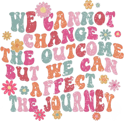 See allEmbrace positivity with this vibrant retro-inspired DTF transfer featuring the uplifting quote, "We Cannot Change The Outcome But We Can Affect The Journey." The design boasts a groovy, distressed font in cheerful pastel hues like coral, mint, and pink, accented with charming daisy-like flowers. This eye-catching design exudes a laid-back 70s vibe, making it a perfect statement piece. It's a high-quality, ready to press design that brings immediate good vibes to any garment or accessory. This inspirational iron on transfer is ideal for anyone looking to spread a message of hope, resilience, and mindful living. Perfect for personalizing apparel for self-care advocates, yoga enthusiasts, teachers, counselors, or anyone who appreciates a positive outlook. Small t-shirt businesses and Etsy sellers will find this a fantastic heat transfer design for creating unique, uplifting products. It makes a thoughtful gift for birthdays, graduation, Mother's Day, or just to encourage a friend or loved one. Applying this heat press transfer is simple and efficient. It adheres beautifully to a wide range of materials including cotton, polyester, cotton-poly blends, and even nylon. For best results, use a heat press at 300-325°F for 15 seconds with medium pressure, or apply with a household iron. There's no tedious weeding required—simply peel and press! Create stunning custom t-shirts, hoodies, sweatshirts, tote bags, pillow covers, and denim jackets. For lasting durability, wash garments inside out and tumble dry low. Experience superior quality with this ready to press transfer. It features vibrant, full-color printing that captures every fine detail of the distressed texture and cheerful blooms. The result is a crack-resistant image that feels soft to the touch, without the heavy, stiff feel of traditional vinyl. Each direct to film transfer is printed on premium DTF film with a strong adhesive backing, ensuring professional-grade results and easy application for all your creative projects.