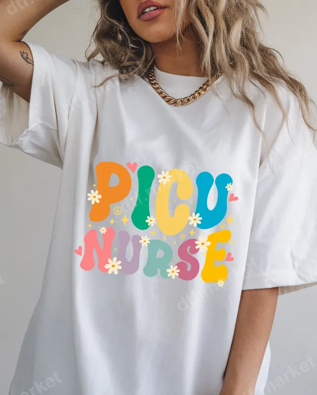 See allThis vibrant DTF transfer features 'PICU Nurse' in a fun, retro groovy font, adorned with playful daisies, peace signs, and hearts. The colorful, whimsical design captures a joyful 70s aesthetic, making it a standout piece. This ready to press heat transfer is perfect for adding a touch of personality to any garment, celebrating the incredible work of Pediatric Intensive Care Unit nurses with style. It's an eye-catching heat press design that brings positive vibes wherever it goes. Ideal for dedicated PICU nurses, nursing students, and healthcare professionals who love a touch of retro charm. This iron on transfer makes a fantastic gift for Nurse Appreciation Week, graduation ceremonies, birthdays, or just to show gratitude. It’s also perfect for team shirts, hospital events, or casual wear, allowing nurses to proudly display their specialty with a unique and cheerful graphic. Imagine it on a comfortable t-shirt or a cozy sweatshirt. Applying this professional quality direct to film transfer is straightforward and hassle-free, requiring no weeding or layering. Our heat press ready designs work flawlessly on a wide range of fabrics, including 100% cotton, 100% polyester, and various cotton/poly blends. For best results, use a heat press at 300-325°F for 15 seconds with medium, even pressure. This makes it an ideal t-shirt transfer for both seasoned crafters and beginners. Crafted using premium DTF film and high-quality inks, this apparel transfer ensures vibrant colors and exceptional durability. The design is engineered to be crack-resistant, stretchable, and incredibly soft to the touch, providing a comfortable feel on any garment. Experience professional-grade results that withstand countless washes, maintaining their brilliance and integrity. Transform your apparel with an easy-to-use, long-lasting iron on decal.