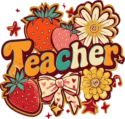 Retro Groovy Teacher DTF Transfer with Strawberries & Flowers