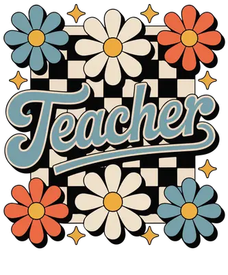 Retro Groovy Teacher Flowers & Checkerboard DTF Transfer