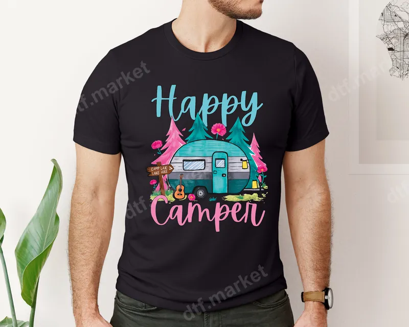 See allJourney into the great outdoors with our charming Happy Camper DTF transfer, featuring a delightful retro travel trailer nestled among vibrant teal and pink pine trees, accented with cheerful flowers and a classic guitar. A rustic sign points towards 'Camp Lake' and 'Lake Hike,' setting a perfect scene for adventure. The cheerful 'Happy Camper' text in a whimsical script captures the joyful spirit of nature lovers. This high-quality DTF transfer is a ready to press design, bringing instant personality to any garment. This unique direct to film transfer is perfect for anyone who loves the open road, camping under the stars, or simply embracing the relaxed vibe of nature. It makes an ideal gift for RV owners, glamping enthusiasts, hikers, and travel bloggers. Whether you're planning a family camping trip, a lakeside retreat, or just want to celebrate your love for the outdoors, this versatile iron on transfer is a fantastic choice for personalizing your gear or creating memorable gifts for friends and family. Applying this heat press design is incredibly easy, making it accessible for both beginners and experienced crafters. Our durable heat transfers adhere perfectly to a wide range of materials, including cotton, polyester, and various blends. For best results, use a heat press at 300-325°F for 15 seconds with medium pressure, then cold peel the film. Alternatively, a household iron can be used with firm, even pressure. Enjoy the convenience of no weeding required, getting your custom apparel ready in minutes. Experience superior quality with our professional-grade heat press transfer. Each design boasts vibrant colors that pop, exceptional wash durability, and resistance to cracking or peeling, ensuring your custom transfer looks great for countless adventures. The soft, flexible feel of the finished product means your garment remains comfortable to wear. Crafted with premium DTF film and strong adhesive, this apparel transfer promises a professional finish that lasts.