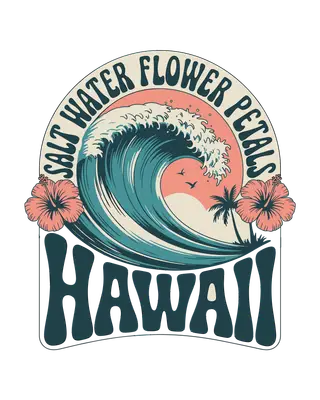 See allCapture the laid-back spirit of the islands with this vibrant Retro Hawaii Surf Wave DTF transfer. This design features a powerful ocean wave in serene teal and cream tones, set against a peachy sunset backdrop with subtle palm tree silhouettes and flying birds. Flanking the wave are two delicate pink hibiscus flowers, while the arched text "SALT WATER FLOWER PETALS" and the bold, wavy "HAWAII" lettering complete this nostalgic, ready to press design. This tropical heat transfer design is perfect for anyone yearning for the beach, surfers, vacation enthusiasts, or small businesses creating custom resort wear. It makes an ideal iron on transfer for crafting unique souvenirs for Hawaii trips, spring break getaways, or as a thoughtful gift for friends and family who love the sun, sand, and surf. Imagine this design on matching family vacation shirts or as a statement piece for your next beach party. Applying this heat press transfer is a breeze. It works beautifully on a wide range of materials including cotton, polyester, cotton-poly blends, and even nylon fabrics. Simply use a heat press at 300-325°F for 15 seconds with medium pressure, or apply with a household iron. There's no tedious weeding required—just peel and press! It's perfect for creating custom t-shirts, cozy hoodies, sweatshirts, stylish tote bags, beach towels, and even denim jackets. For best results and lasting durability, wash garments inside out and tumble dry on low heat. Our ready to press transfer boasts vibrant, full-color printing with exceptional fine detail, ensuring your apparel stands out. This direct to film transfer is crack-resistant and offers a soft, lightweight feel, unlike heavy vinyl. Each transfer is printed on premium DTF film with a strong, reliable adhesive backing, guaranteeing professional, high-quality results for every project.