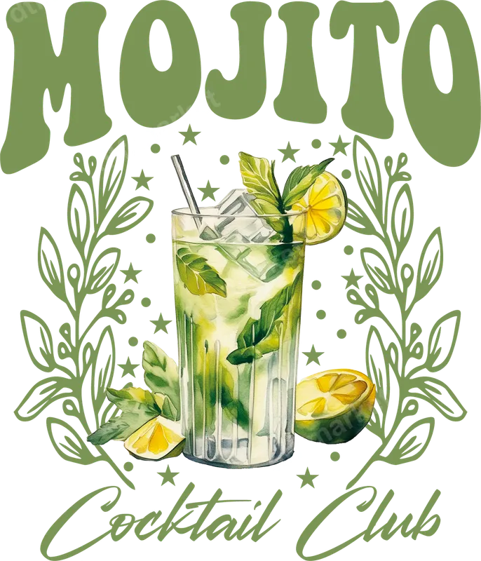 Retro Mojito Cocktail Club DTF Transfer | Ready to Press Drink Design