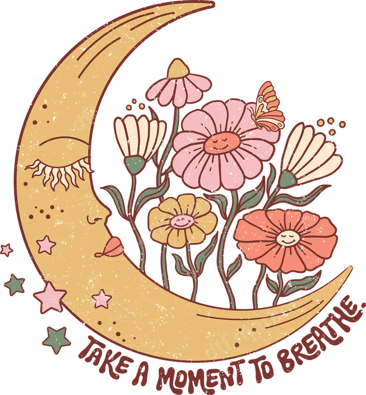 Retro Moon & Floral DTF Transfer | Take A Moment To Breathe Design