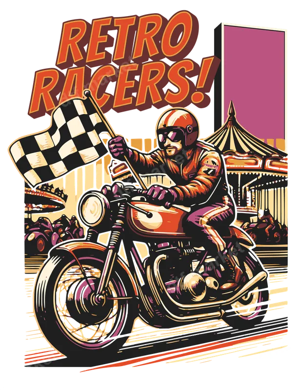 See allDive into nostalgia with our "Retro Racers" DTF transfer, a vibrant design capturing the thrill of classic motorsport. This eye-catching DTF transfer features a cool, helmeted motorcyclist, mid-race, clutching a checkered flag, all set against a backdrop suggesting a lively fairground. The bold "RETRO RACERS!" lettering perfectly complements the vintage aesthetic, making this a standout piece that's ready to press onto your favorite apparel. This heat press design is perfect for motorcycle enthusiasts, racing fans, and anyone who appreciates vintage style and speed. It makes an excellent gift for Father's Day, birthdays, or for customizing gear for motorcycle rallies, car shows, or racing events. Imagine this iconic design on a t-shirt for your dad, a hoodie for your biker friend, or a custom tote bag for yourself. Applying this high-quality heat transfer is incredibly easy, making it accessible for both beginners and experienced crafters. Our direct to film transfer works beautifully on a wide range of fabrics, including cotton, polyester, and various blends. Simply use a heat press at 300-325°F for 15 seconds with medium pressure, or apply with a household iron. Unlike traditional vinyl transfers, there's absolutely no weeding required, saving you time and effort. Experience professional-grade results with this durable heat press ready design. Our premium DTF film ensures vibrant, long-lasting colors that resist cracking and peeling, even after multiple washes. The finish is soft to the touch, seamlessly integrating with your garment for a comfortable wear. Elevate your wardrobe or create unique custom apparel with this fantastic retro motorcycle shirt design.