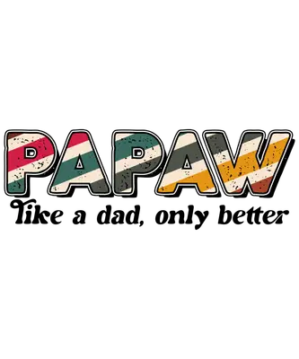 See allThis charming DTF transfer features the word "PAPAW" in a bold, vintage-inspired font with a distressed texture and striking diagonal stripes in muted retro colors like olive green, mustard yellow, and rusty red. Below, the playful phrase "Like a dad, only better" is elegantly scripted, adding a touch of humor and affection. This ready to press design perfectly captures a nostalgic, proud, and fun-loving spirit, ideal for celebrating that special grandfather figure in your life. This delightful iron on transfer is the ultimate gift for any proud Papaw, whether it's for Father's Day, his birthday, Grandparent's Day, Christmas, or just because. It's an excellent choice for grandchildren, children, or wives looking to create a heartfelt and unique present. Small business owners and crafters will find this heat transfer design invaluable for producing custom apparel lines for family events, local markets, or personalized gifts. Applying this heat press transfer is a breeze! It adheres beautifully to a wide range of fabrics, including cotton, polyester, cotton-poly blends, and even nylon, ensuring versatility for your projects. Achieve professional results using a heat press set to 300-325°F for 15 seconds with medium pressure, or apply it with a household iron. There’s no weeding required – simply peel and press! It's perfect for creating custom t-shirts, cozy hoodies, stylish sweatshirts, practical tote bags, fun baby onesies, aprons, and even denim jackets. For lasting durability, wash garments inside out and tumble dry low. Our ready to press transfer offers exceptional quality, featuring vibrant, full-color printing that captures every fine detail of the distressed retro design. It's crack-resistant and boasts a soft-to-the-touch feel, avoiding the heavy, stiff texture often associated with vinyl. Each direct to film transfer is meticulously printed on premium DTF film with a strong adhesive backing, ensuring professional-grade results that stand up to wear and washing, making every custom creation a success.
